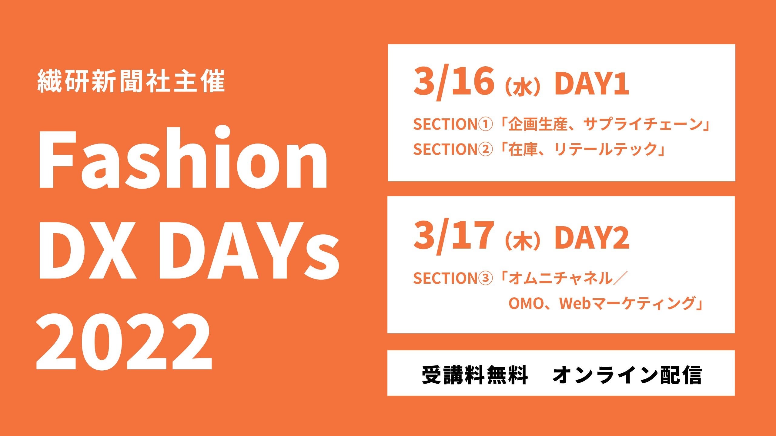 シルバーエッグ・テクノロジー株式会社は、2022年3月16日(水)~3月17日(木)に開催される、株式会社繊研新聞社主催のオンラインイベント「ファッションDX DAYs 2022」に出展いたします。