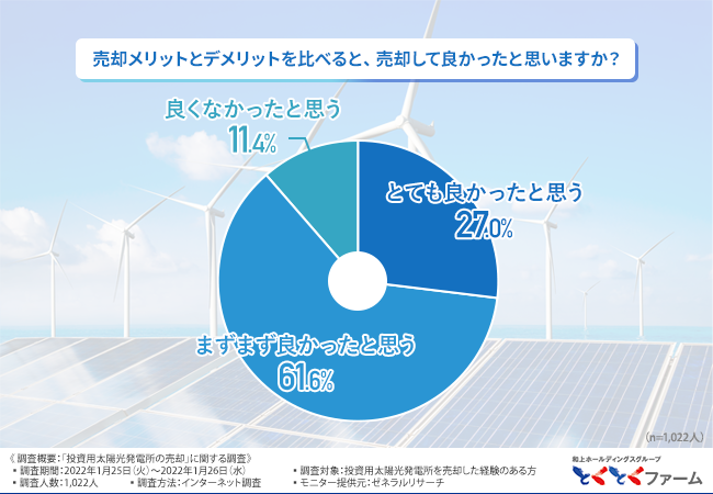 そこで今回、太陽光発電事業のセカンダリー市場サイト『とくとくファーム』(https://wajo-holdings.jp/farm/)を運営する株式会社和上ホールディングス(https://wajo-holdings.jp/)は、投資用太陽光発電所を売却した経験のある方を対象に、「投資用太陽光発電所の売却」に関する調査を実施しました。