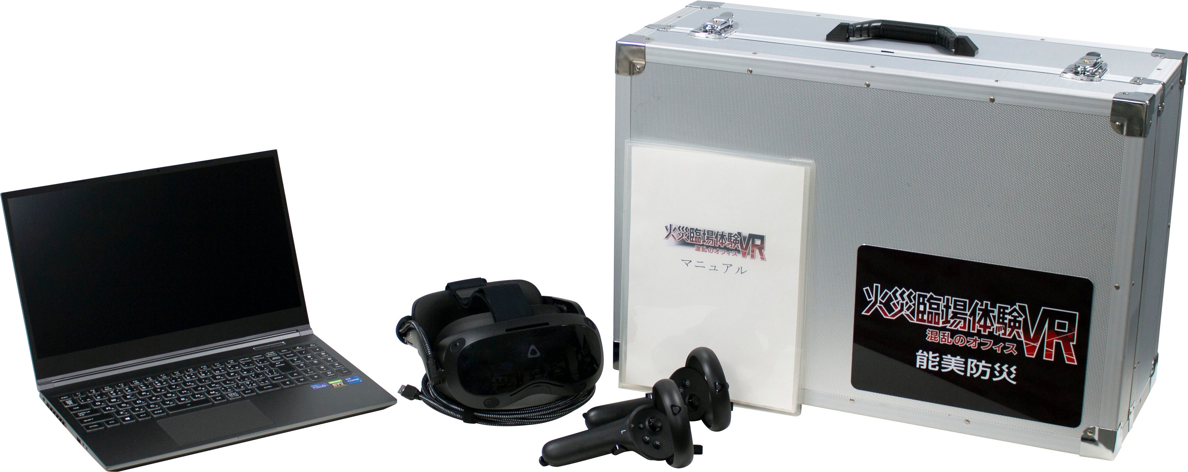 そこで能美防災では、オフィスビルでの火災や大地震の恐怖と、それを目の当たりにした人々の混乱の様子をリアルに体験することができる「火災臨場体験VR ~混乱のオフィス~」を制作。体験に必要な機材をセットにして、専用のレンタルECサイト「XRプラス:https://www.xr-plus.jp/」より提供します。
