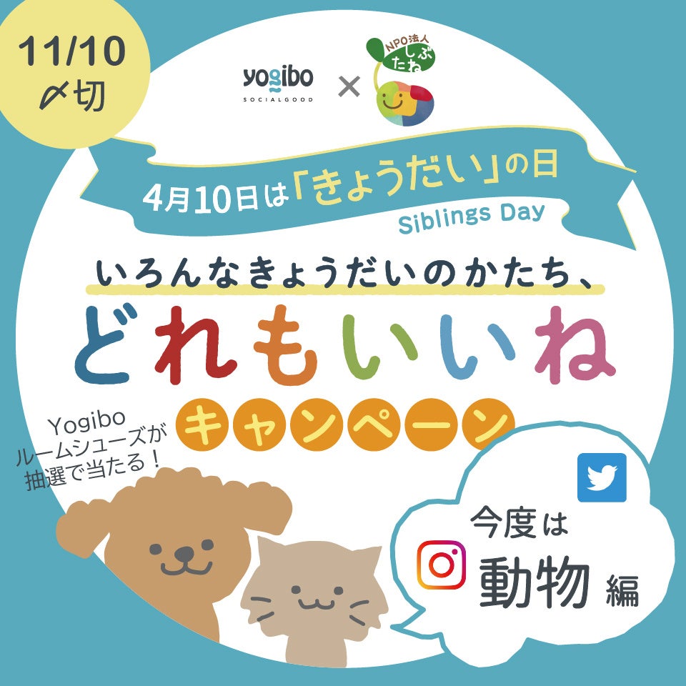 病気や障がいのある子どもの「きょうだい」のサポートを行うNPO法人しぶたね(所在地:大阪府大東市、代表:清田 悠代)は、快適すぎて動けなくなる魔法のソファ「 Yogibo 」を運営している株式会社Yogibo(大阪市中央区/代表取締役 木村誠司)が展開する社会課題解決プロジェクト「TANZAQ」に採択され、2022年の「きょうだいの日(シブリングデー)」を広げるキャンペーンを行ってきました。今回は第2弾として、「きょうだい×動物」にまつわる画像を投稿するキャンペーンを実施します。