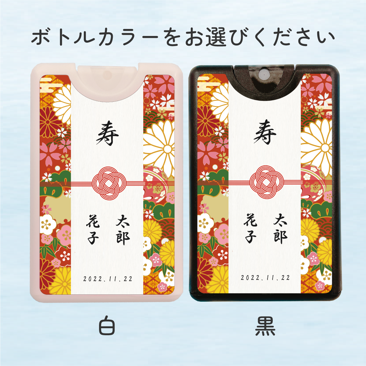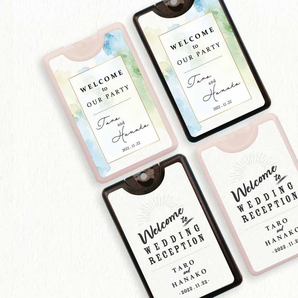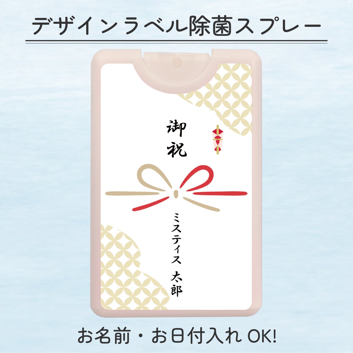 こちらも結婚式でのギフトや出産、入学祝い、各種お祝いにオリジナルデザインの除菌スプレーを添えていただけます。