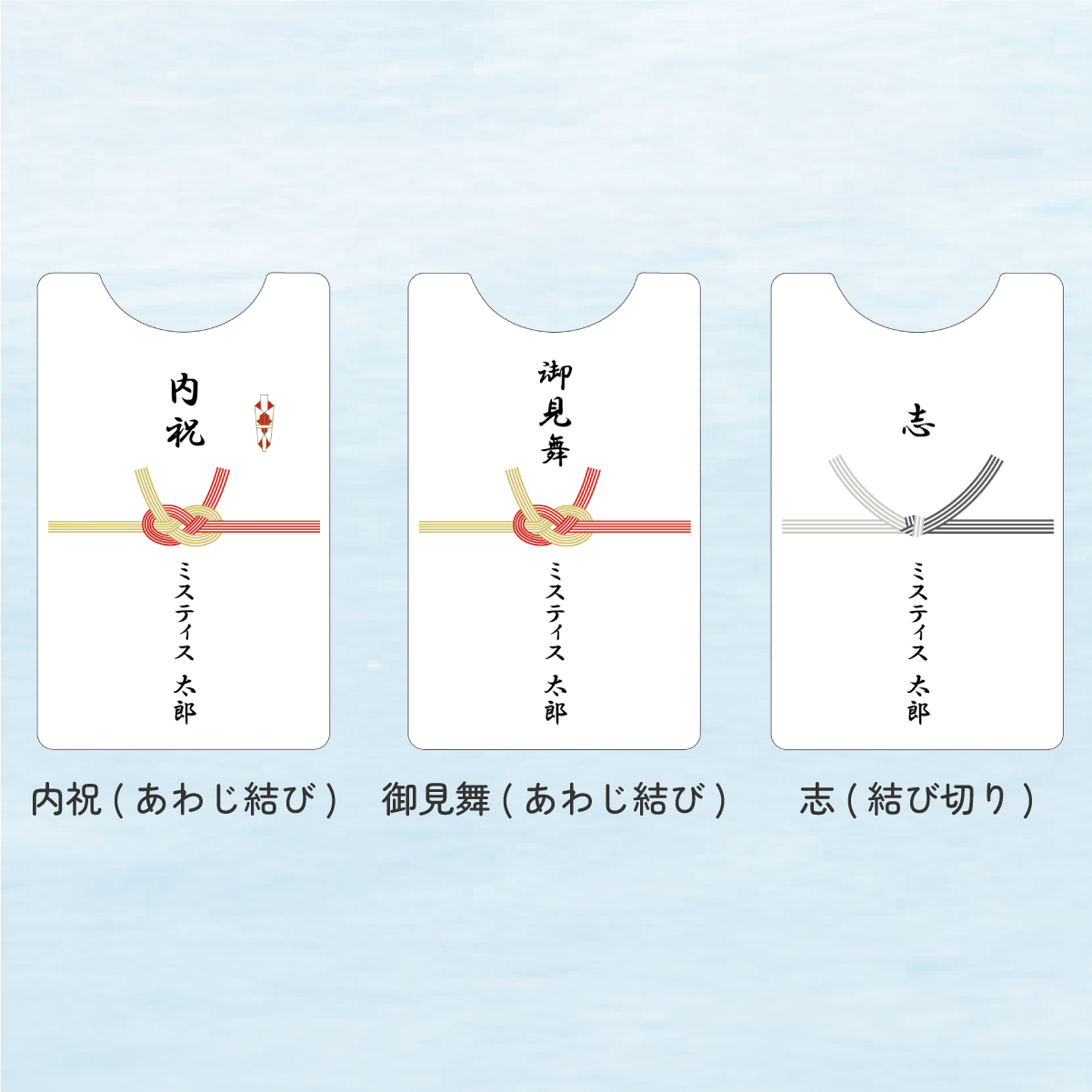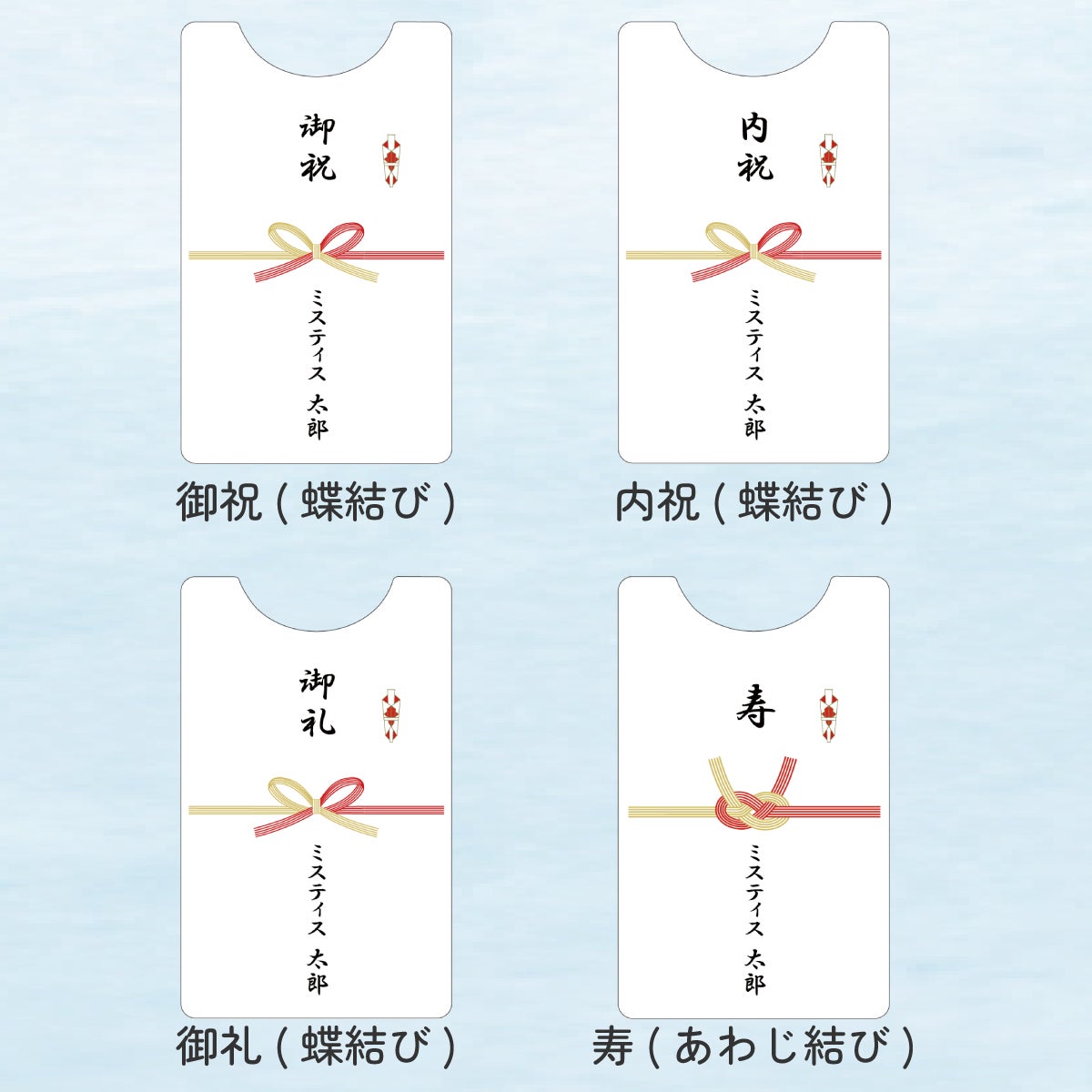 熨斗柄デザインの4種類は、ご利用シーンに合わせた表書きを選べるようになっています。