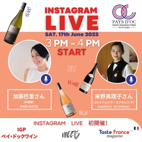 米野さん、巴里さんへの質問やIGPペイ・ドックワインに関する質問を、事前にTaste France Magazine 公式Instagramで募集しますので、是非コメントを寄せていただき、インスタライブにご参加ください。