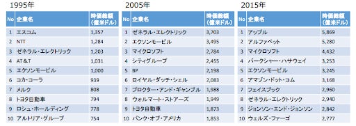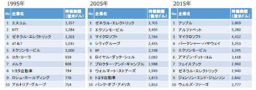 1995年には時価総額ランキングの上位10社のうち、2社が日本企業でした。