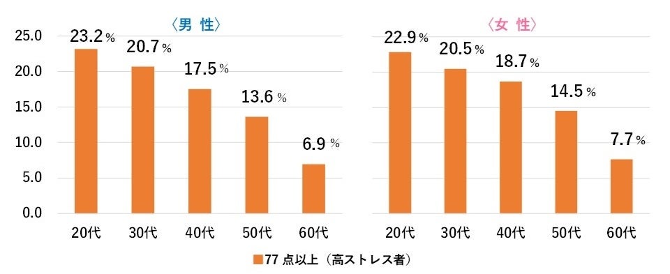 ■年代別では年齢が低下するごとに高ストレス者割合が増加