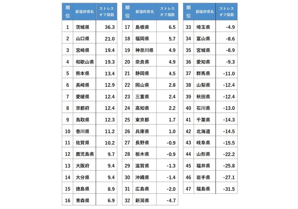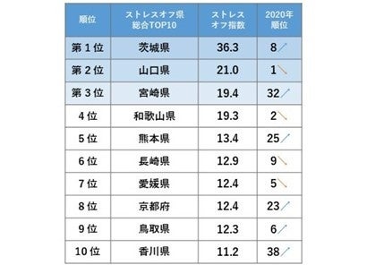 ■2021年度のストレスオフ県ランキング第1位は「茨城県」