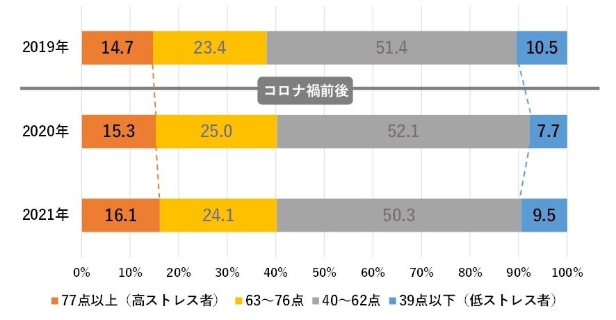 〈2019-2021年ストレス状況比較〉
