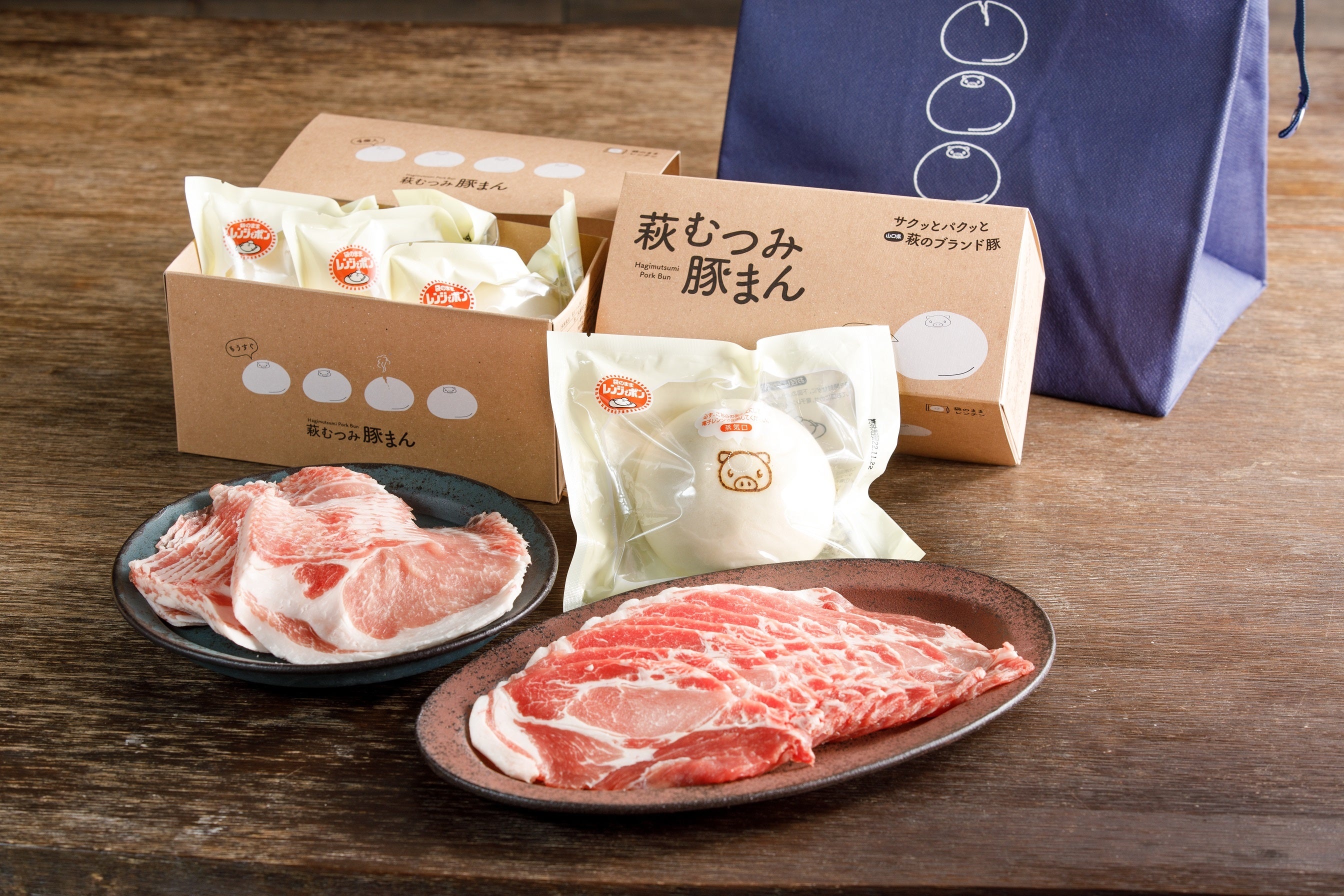 1.萩むつみ豚ロース・豚まんセット(ロゴ風呂敷付) 6,230円