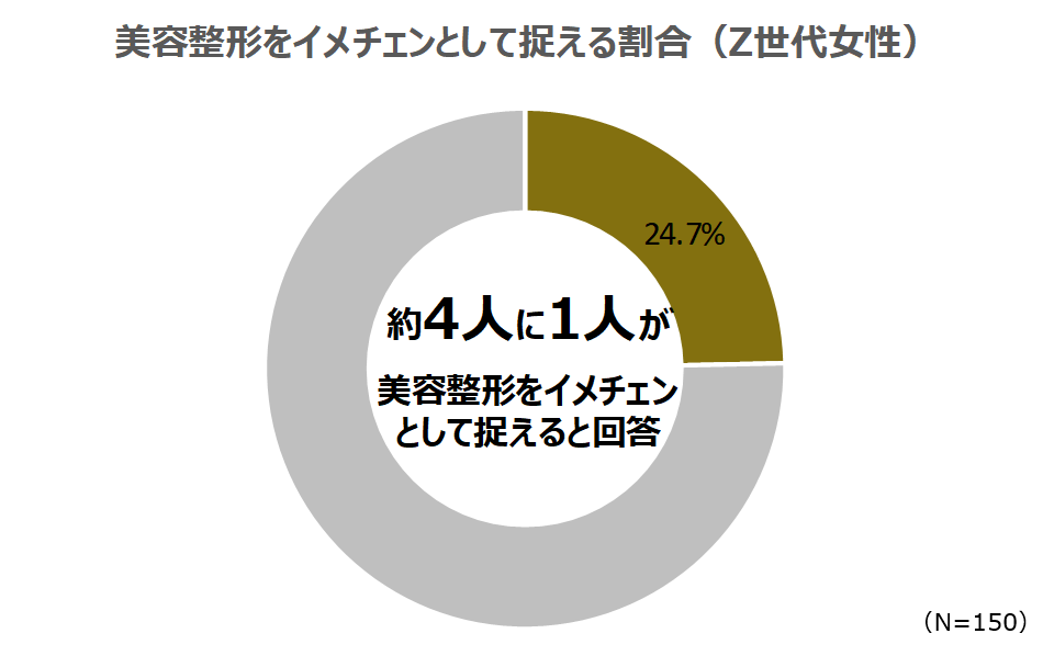 ■ Z世代の女性の4人に1人がイメージチェンジの手段として「美容整形」を考えている。