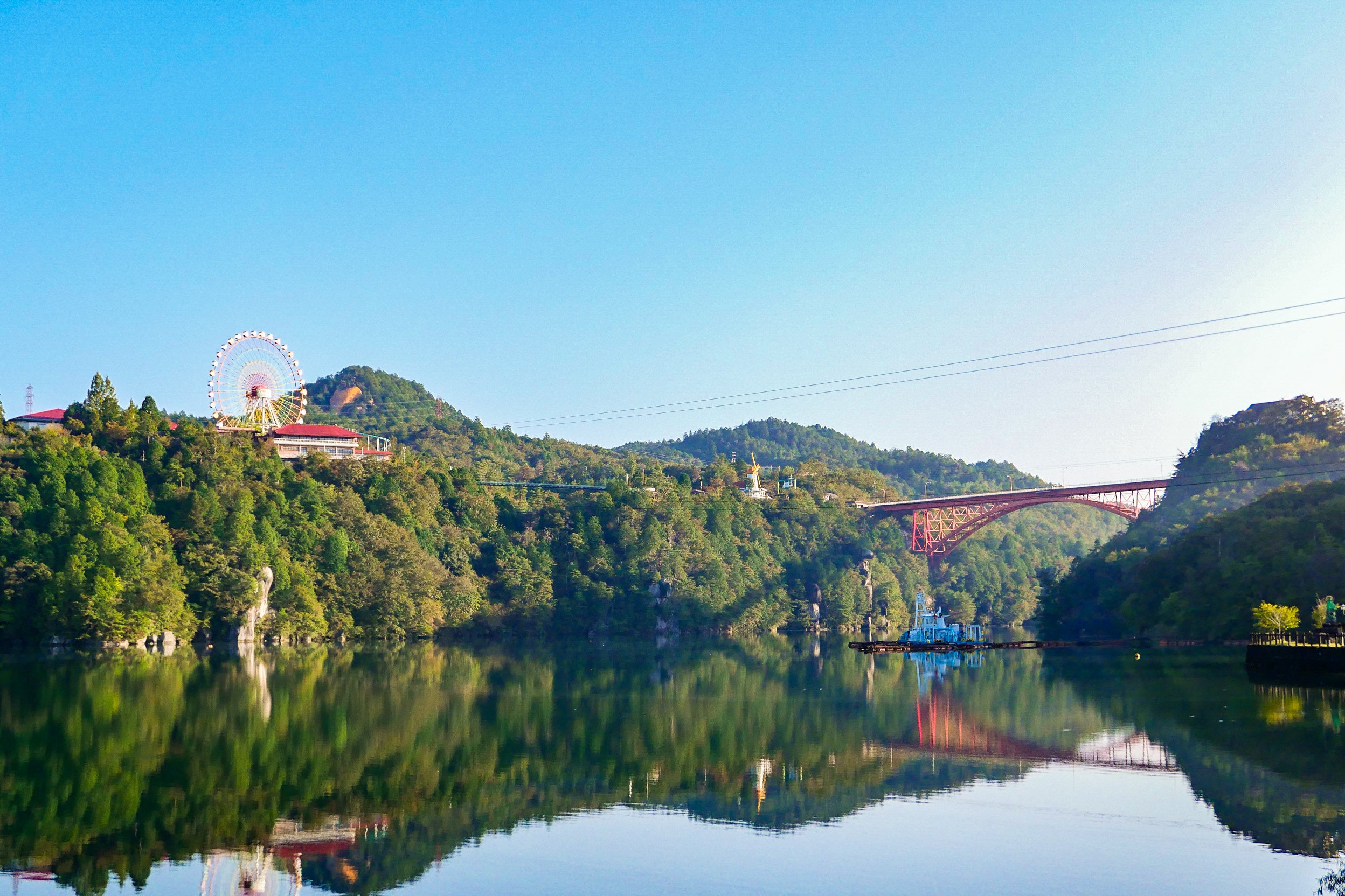 恵那峡は、大正時代木曽川に開発された大井ダムによる人造湖です。ダム等の開発によって残念ながら景観が損なわれてしまうことは全国的に散見されますが、恵那峡は、多数の奇岩等による自然の造形と人造湖が見事に融合することで誕生した景勝地です。迫力ある奇岩群と、春は桜、夏は新緑、秋は紅葉、冬は水鳥が多く集まり、四季を通じて様々な景観が楽しめます。