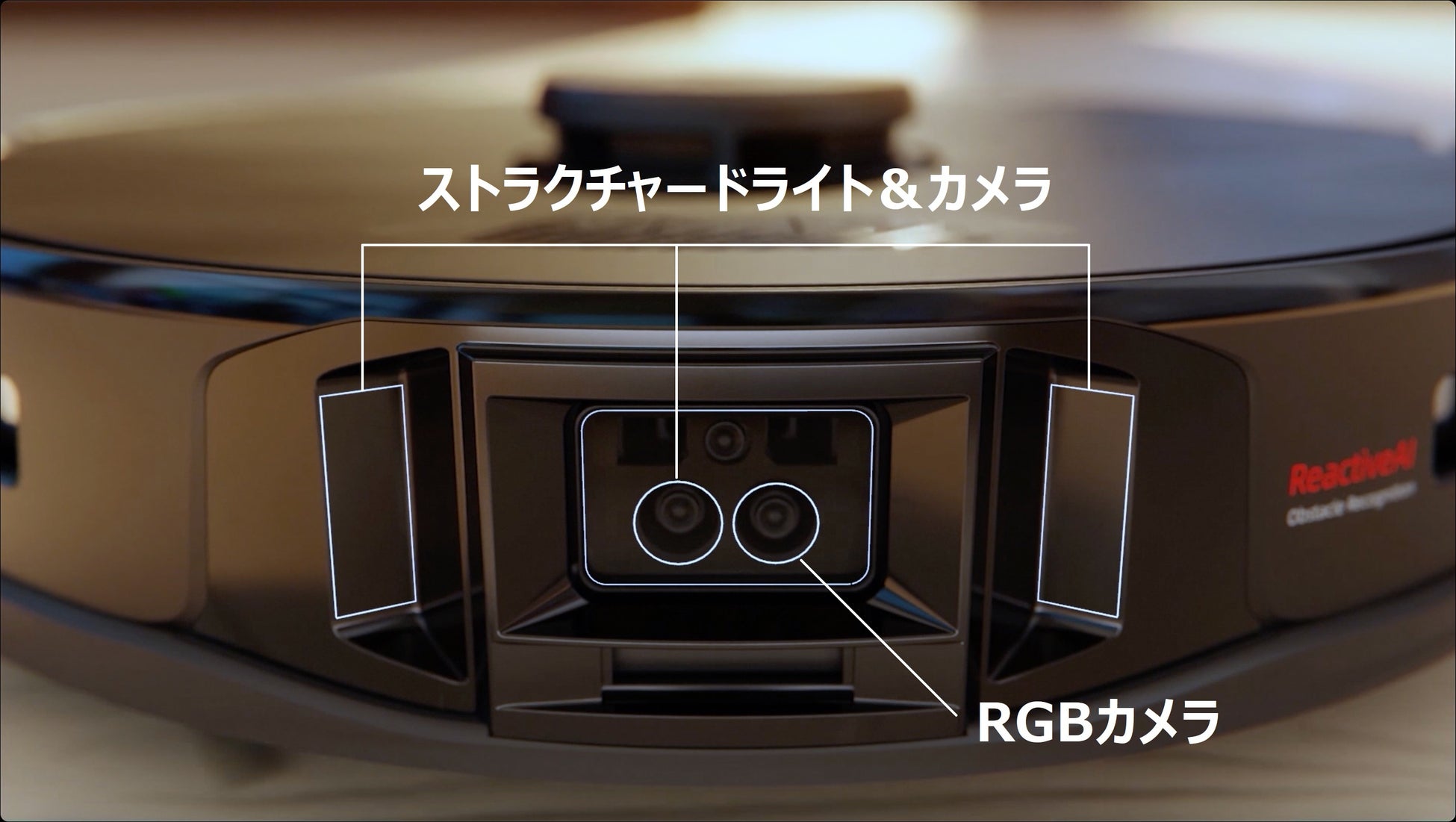 物体の距離や形状を判断する顔認証技術の原理を活用したストラクチャードライトとカメラ及び、画像から物体の特徴を捉えるRGBカメラの2種類のカメラを搭載。家具や小物などをAIが瞬時に分析し、位置や種類を特定します。障害物の認識スピードは、従来比70%※4 速くなり、障害物回避性能も22%※4 向上しました。計8種の障害物〈スリッパなどの履き物・ペットの排泄物・布類・電源タップ・コード・台座・体重計・ちりとり〉や、計5種の家具〈ベッド類、ソファ類(複数人掛け)、TVスタンド、ダイニングセット、トイレ(洋式) 〉まで認識し、回避するだけでなくそれらをアプリ上に表示します※5 。カメラに関するプライバシー保護については、「ユーザーセキュリティ保護のためのTUV認証※6 」を取得。撮影された動画や画像のデータは、保存されないため、安心してご利用いただけます。