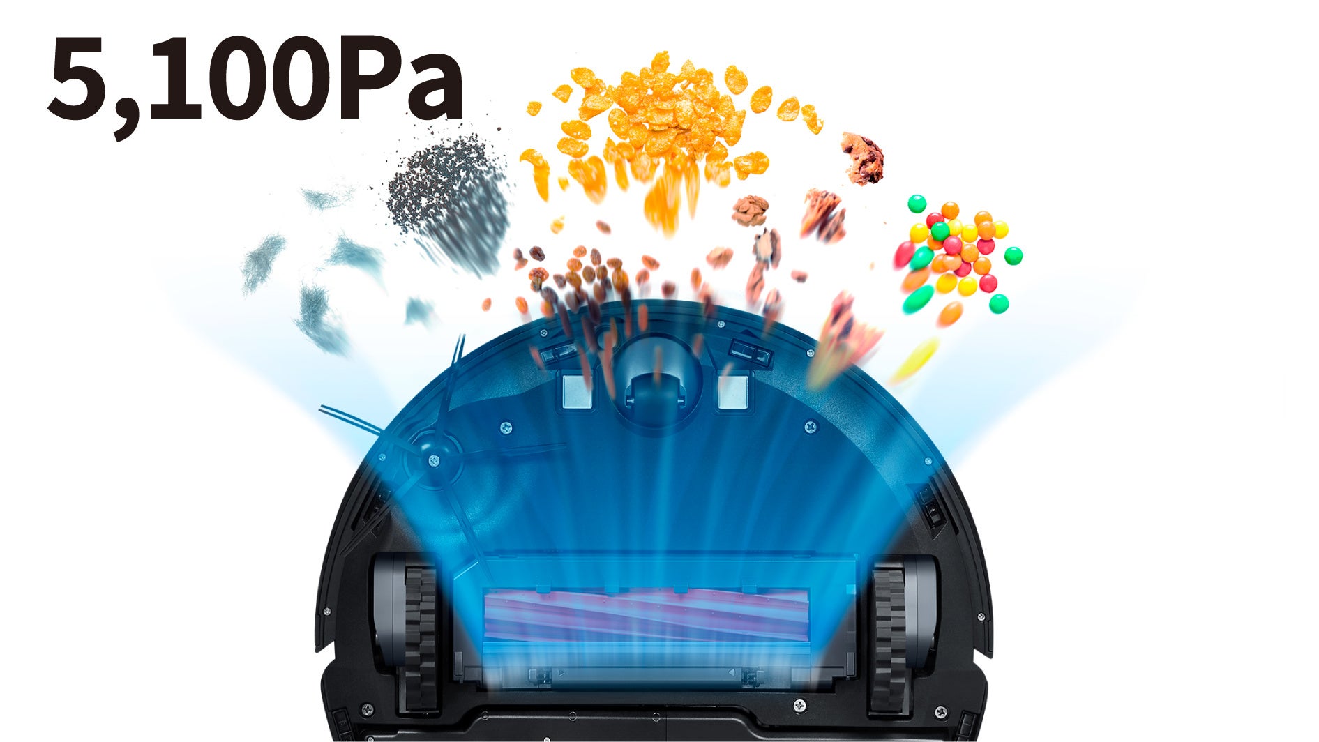 Roborock製品で最強となる従来比2倍※7 の5,100Paまでアップしたパワフルな吸引力で、微細なハウスダストからペットのトイレ砂まで吸い込みます。