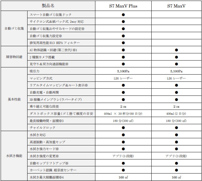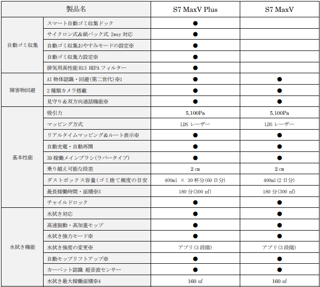 ■Roborock S7 MaxV Plus/S7 MaxV 主な仕様