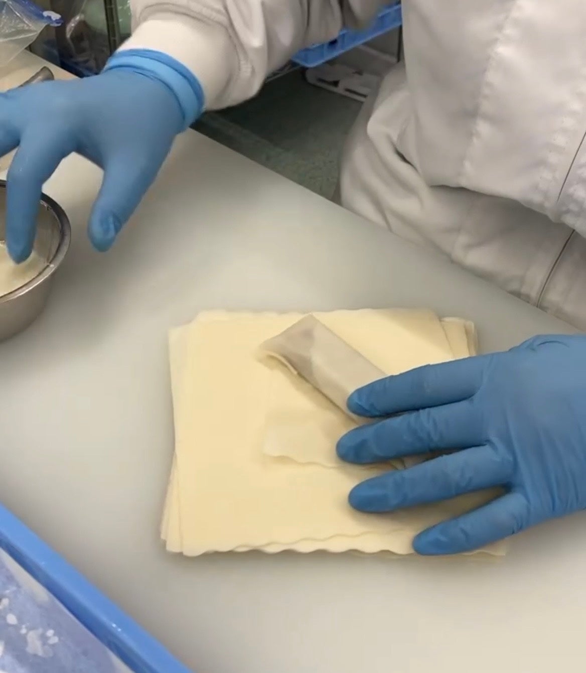 しかし、ミニバーを丸ごと包む工程に挑戦すると、通常の具に比べて形状が異なる点(幅が広くて、短いなど)で、とても巻きにくく、両端に入れる凍結バナナペーストが巻く途中で溶けてしまう課題に直面しました。また油で揚げることによりチョコレートが溶け、ザクザク感が損なわれないかも懸念点でした。