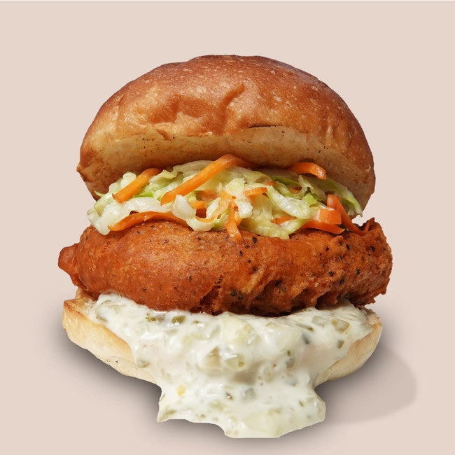 (豆腐で作ったチキン風のパティにオリジナルスパイス衣をまぶし、クリスピーに揚げたバーガー)