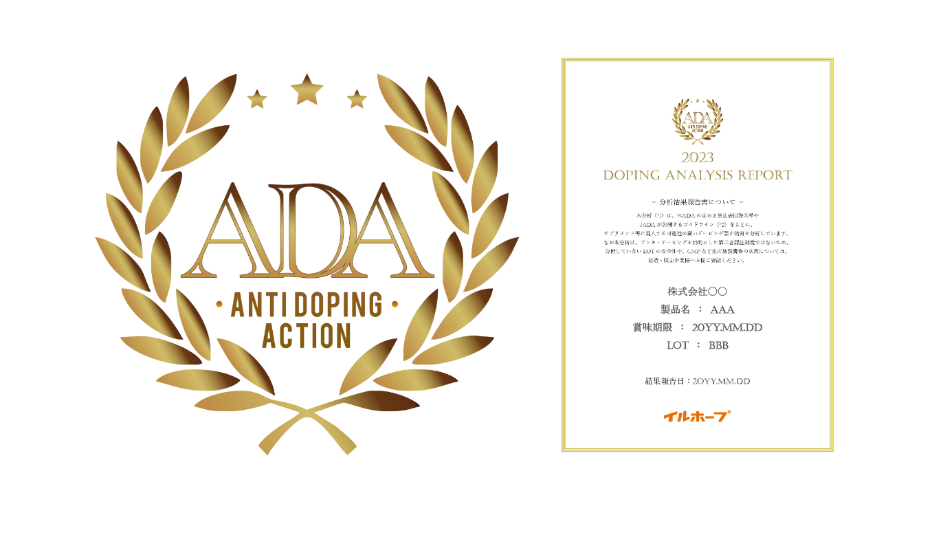 また分析を行い、当社の規定するドーピング禁止物質が混入していないことが証明された場合は、「Anti Doping Action(アンチ・ドーピング・アクション=ADA)」
