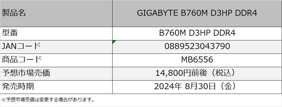 GIGABYTE社製Micro ATXマザーボードIntel® B760 Expressチップセット搭載の「GIGABYTE B760M D3HP DDR4」を発売