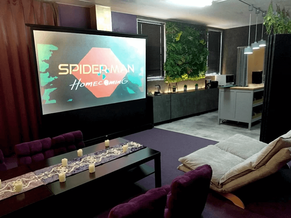 ご自身のパソコンをプロジェクターにつないで大画面で映像を楽しめるので、豪華な誕生日会や女子会、結婚式の二次会、ママ会、デートなど個室レンタルスペースとしてもご利用いただけます。