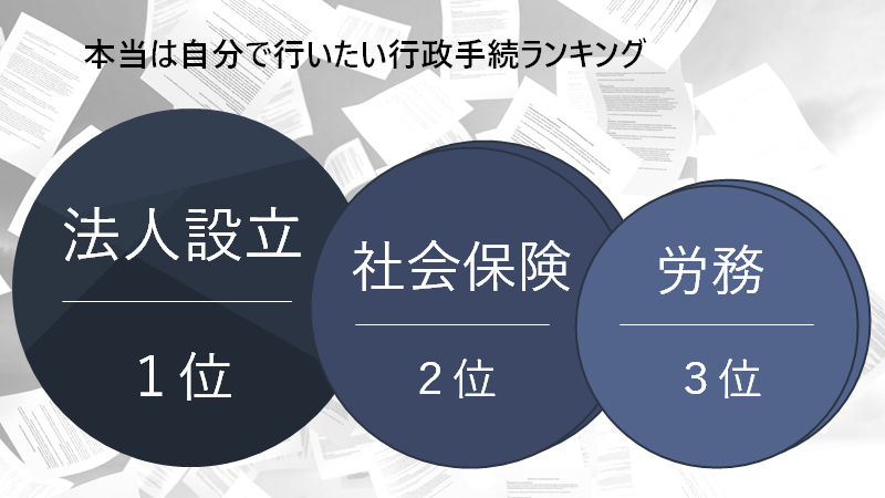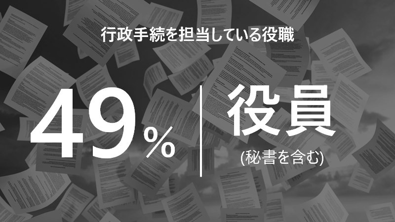 株式会社Scrumyは、2022年3月20日から3月30日までの間、民間企業を対象に行政手続に関するアンケート調査を実施し、約300社の回答を得ました。その結果、約5割の民間企業で「役員(秘書を含む)」が行政手続を行っていること、最も本当は自分で行いたいと思われている行政手続は「設立手続」であることが判明しました。