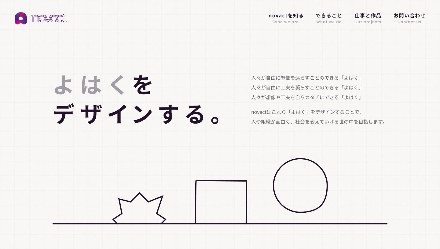 novact合同会社は2018年に立ち上げたクリエイターチームを前身に、約4年の年月の活動を行ってきました。 昨年8月に合同会社に法人化し、8月に1周年を迎える法人です。 今回のリニューアルでは「よはくをデザインする。」をトップに掲げ、そこに根ざしたデザインコンセプトを軸にリニューアルを行いました。 今後も自社のコーポレートサイトでは改善を重ねていきたいと思います。