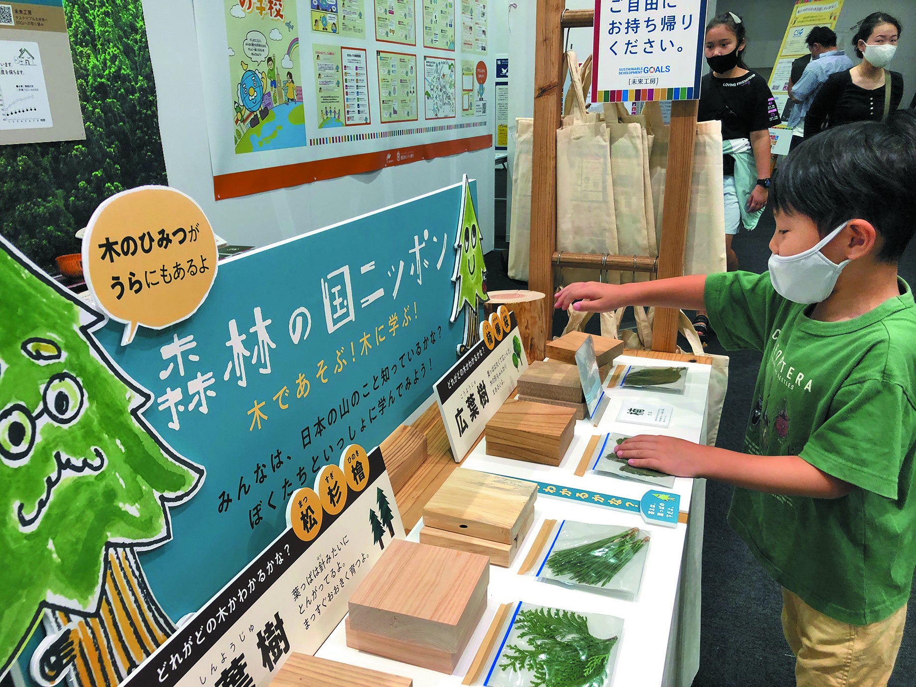 2022年11月、全国一斉木育イベント「森のとびらin福岡」開催!本物の木に触れ、手ざわりや匂いを感じながら、日本の山について考えてみよう