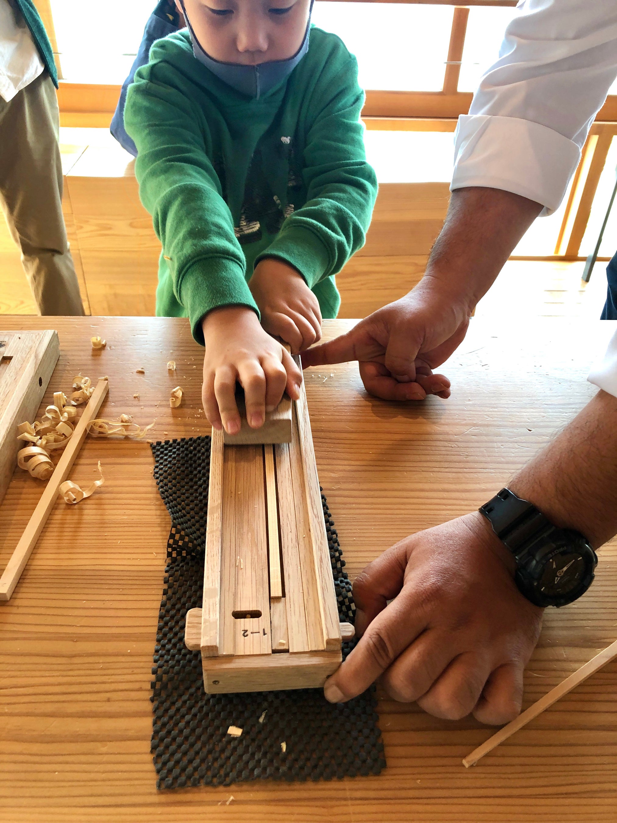 本物の木の匂いや手触りを通して、また、国産材の箸を自分の手で作り、使うことで、私たちの暮らしに欠かせない山の営みを身近に学ぶ機会にします。