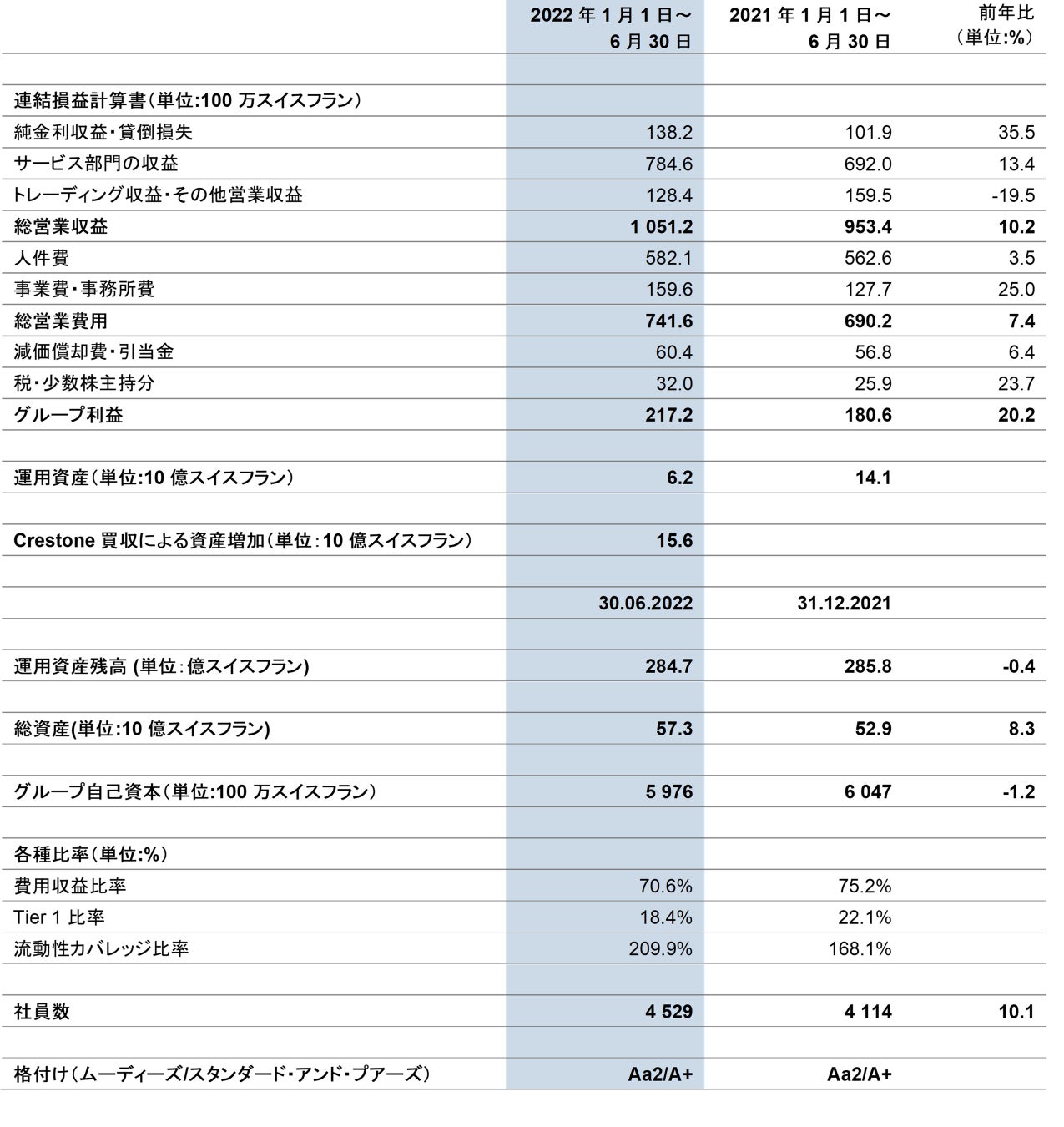 2022年上半期の国際金融市場は地政学的・経済的な不確実性から非常に厳しいものでしたが、顧客の活動が低調であったことからも市場環境の厳しさがうかがえました。そうした中で、LGT は顧客サービス、サステナブル投資ソリューション、慎重なリスク管理に重点を置いてきました。2022年5月12日以降のLGTの業績には、直近に買収したオーストラリアの富裕層向けウェルスマネジメント会社Crestoneの費用と収益が含まれています。