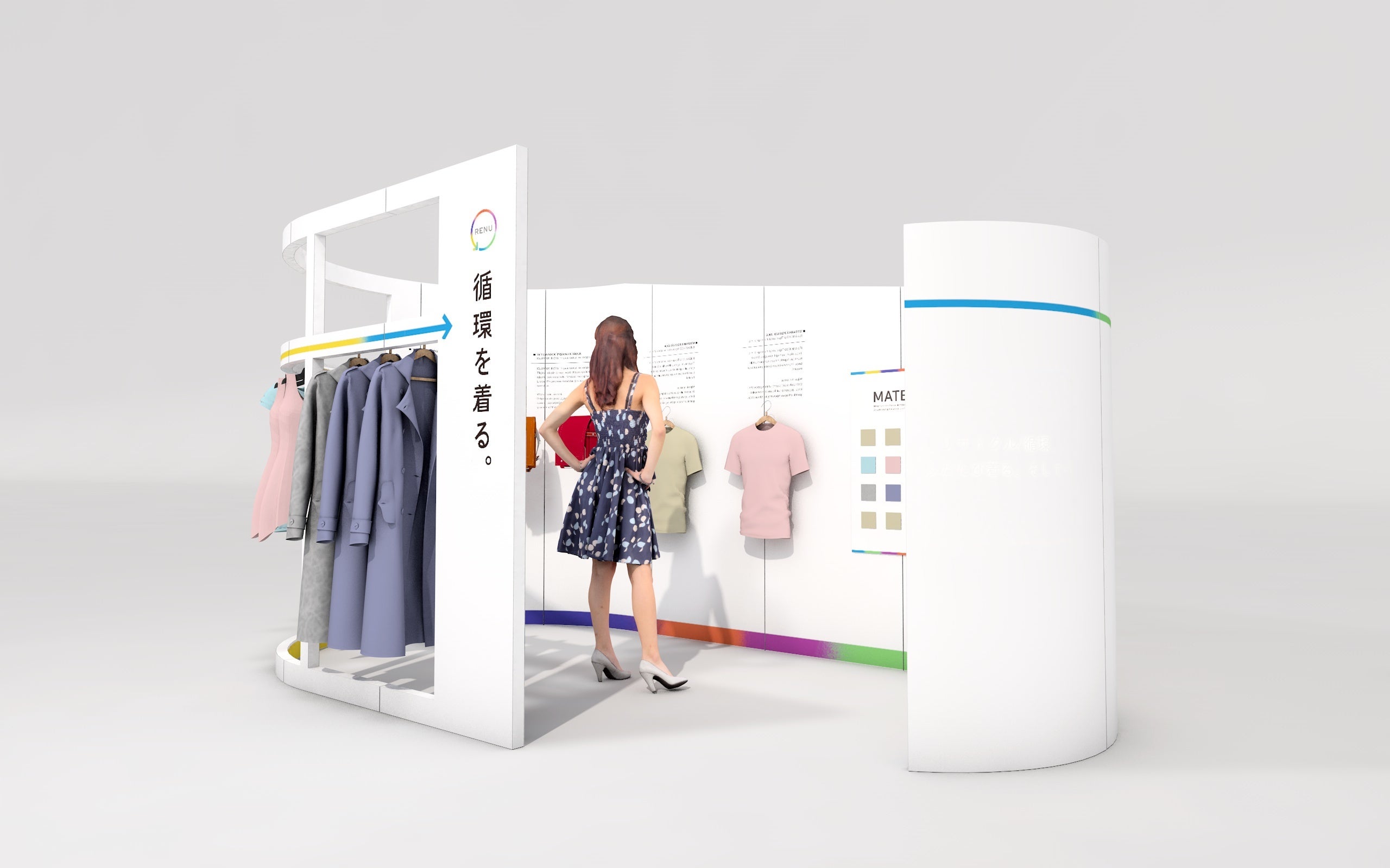本展示では、「地球環境への配慮」、「リサイクル」、「リユース」、「ダイバーシティ&インクルージョン」、「伝統文化の継承」、といった5つをテーマにした「試着室」型展示ブースをご用意。それぞれのテーマに沿ったブランドの多様な商品や素材を実際に手にとって試すことができます。