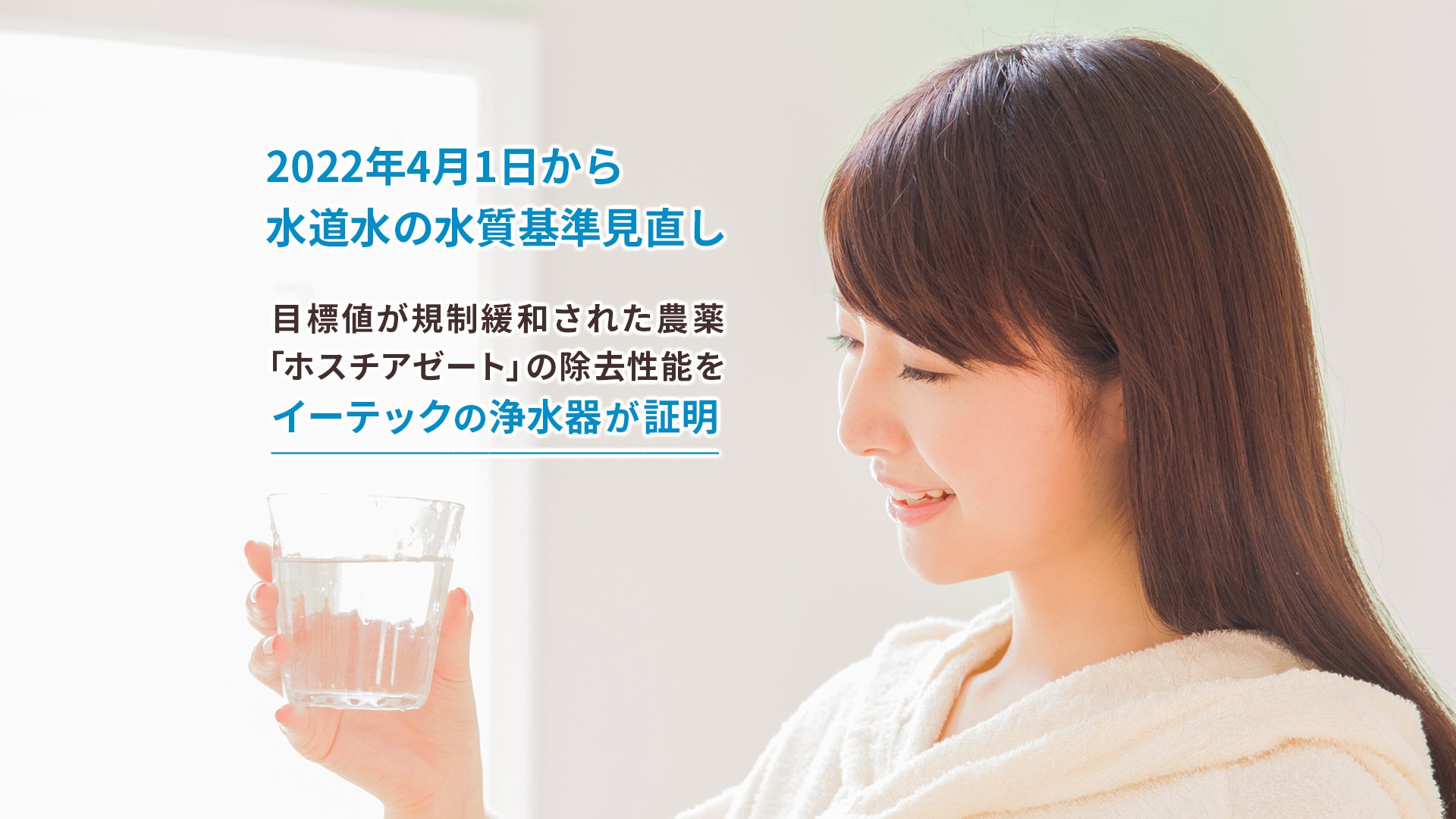 水道水の水質管理目標値が緩和された農薬「ホスチアゼート」について、イーテックの浄水器4製品で除去性能を証明