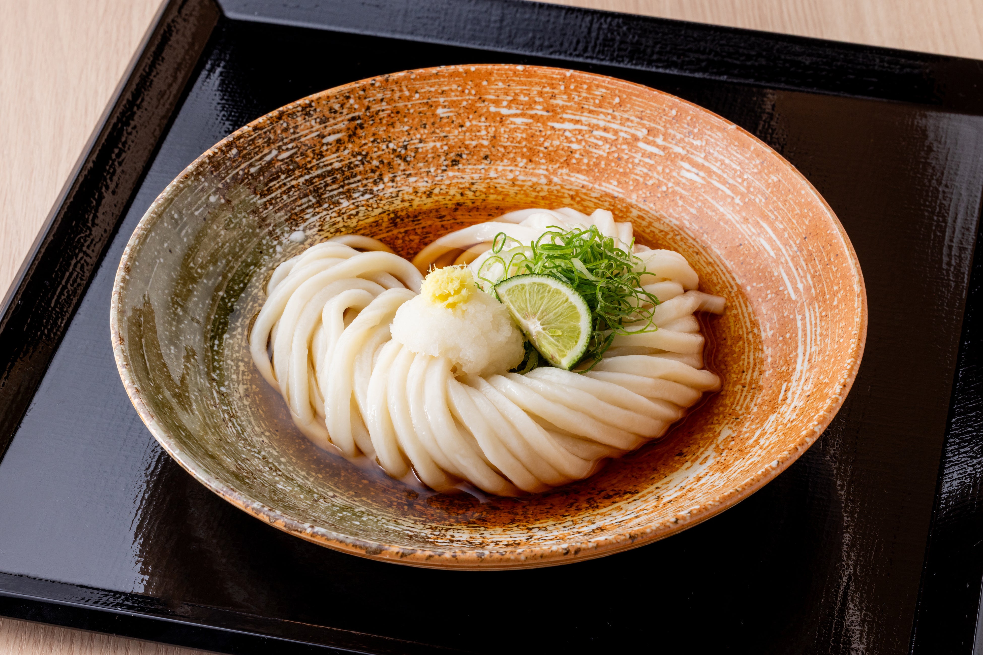 「餅麺」の最大の特徴は、国産小麦2種を独自配合し、じっくり熟成させた特製麺。つるりとした舌触り、噛んだ瞬間に広がるもっちり感、そしてグミのような弾力という、これまでの讃岐うどんや伊勢うどんとは異なる全く新しい食感を実現しました。