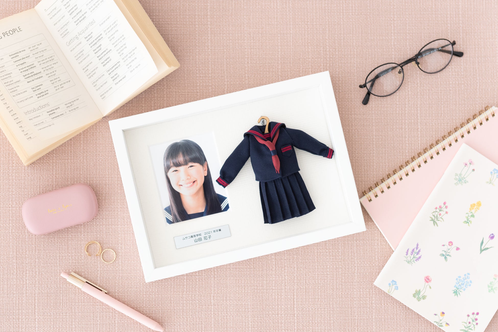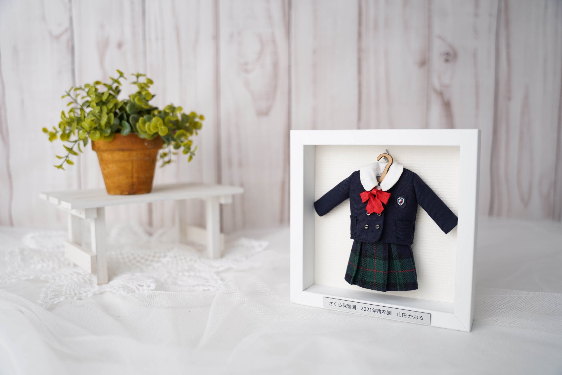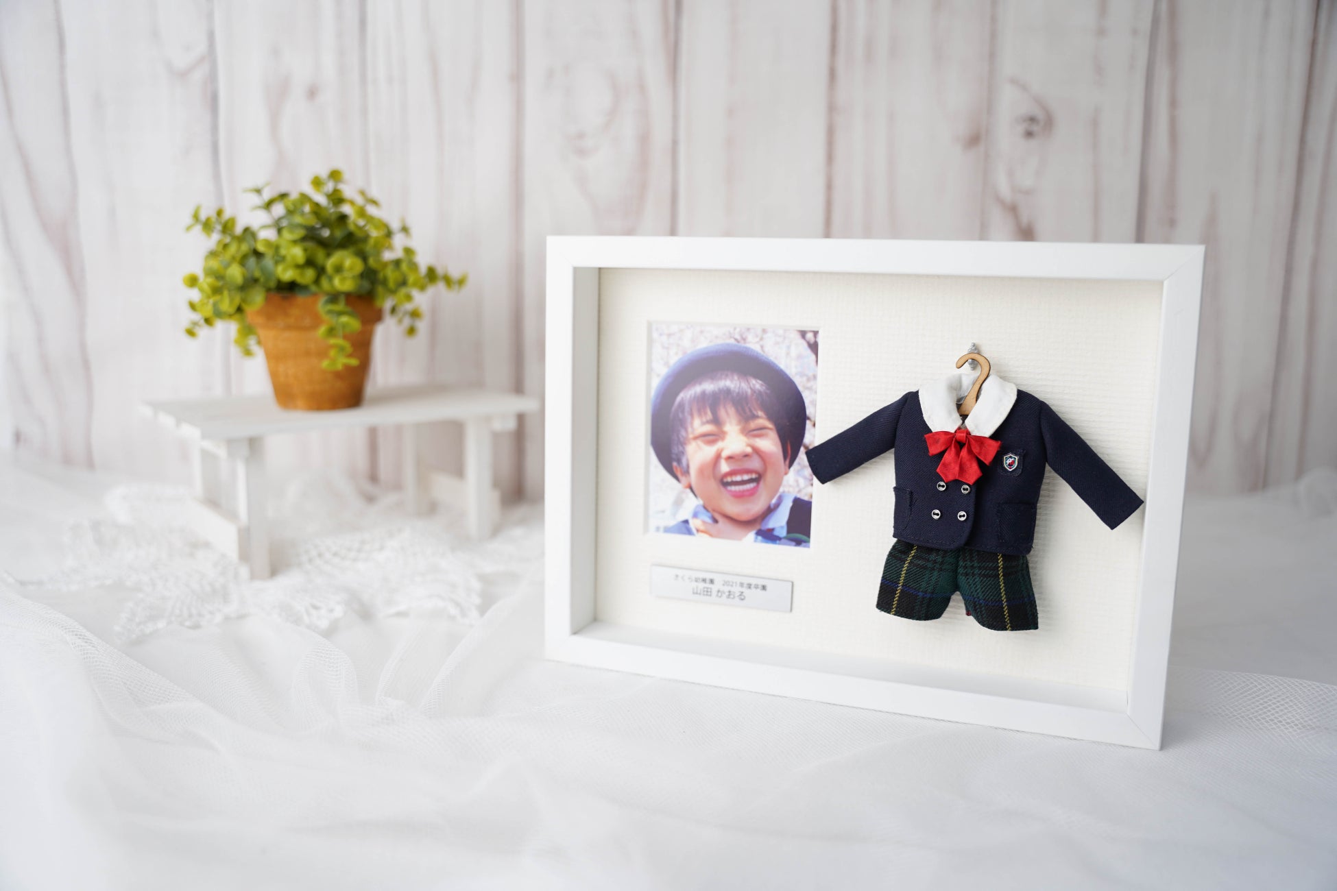 ミニチュア制服と一緒に写真も飾ることができます。