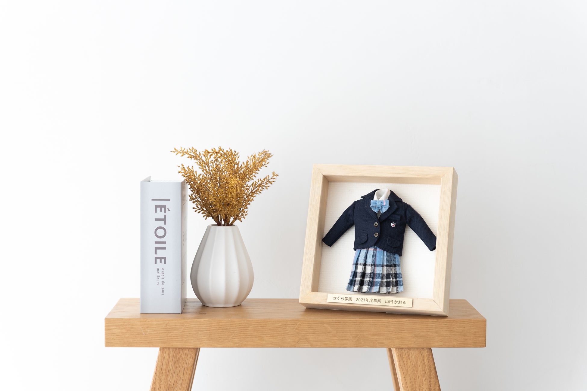 ミニチュアリメイクした制服のみを飾るシンプルなタイプ。内枠たったの15cm。省スペースに飾れます。