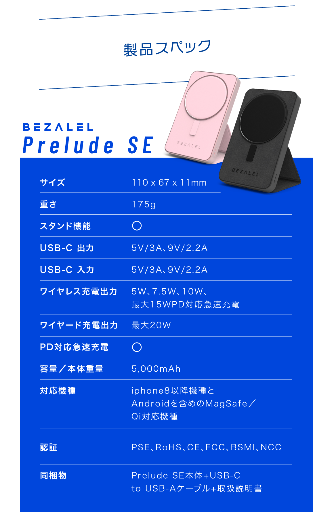• 容量/本体重量:5,000mAh