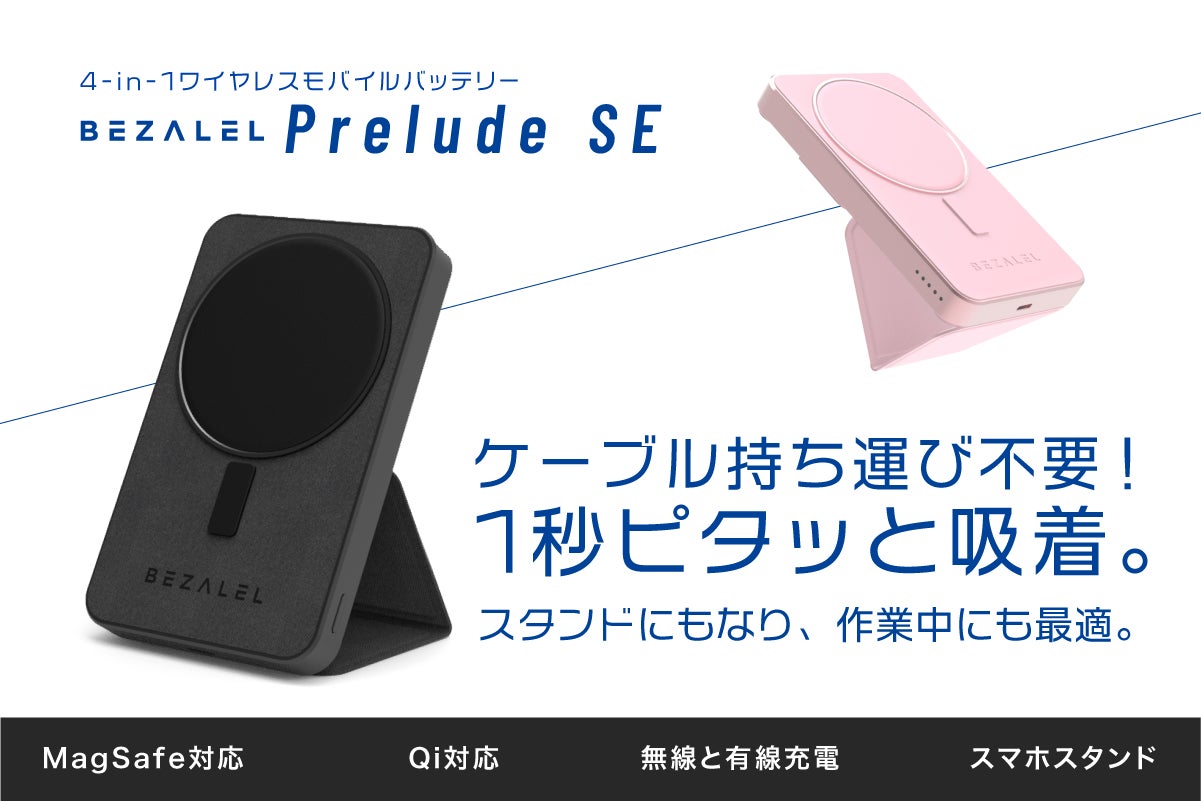 株式会社バッカー・ファウンダーは、販売代理を務めるアメリカのワイヤレス充電ブランドBEZALELの⼀台4役【ワイヤレスモバイルバッテリーPrelude SE】をクラウドファンディングサイト「GREEN FUNDING」にて2022年5月11日(水)より先行予約販売を開始いたします。
