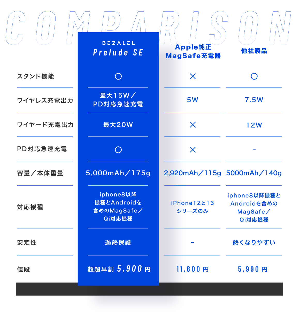 ※Prelude SEはPPS/PD3.0/PD2.0/AFC/FCP/SFCP/PE2.0/PE1.1急速充電に対応しています。