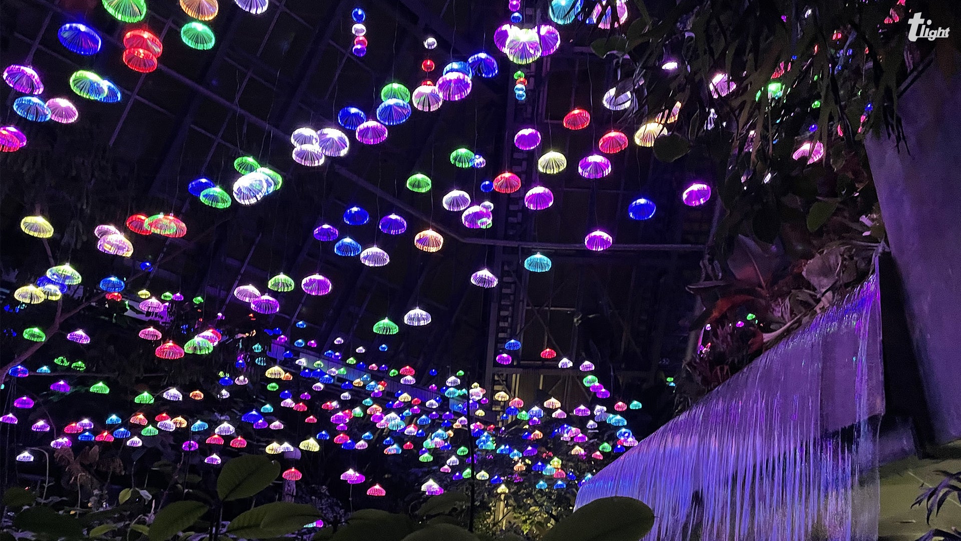 新たに、ゆったりと七色に変化する「きらめく幸せのランタン」が加わり、優しい水音と合いまって、心地よい癒しの空間広がります。