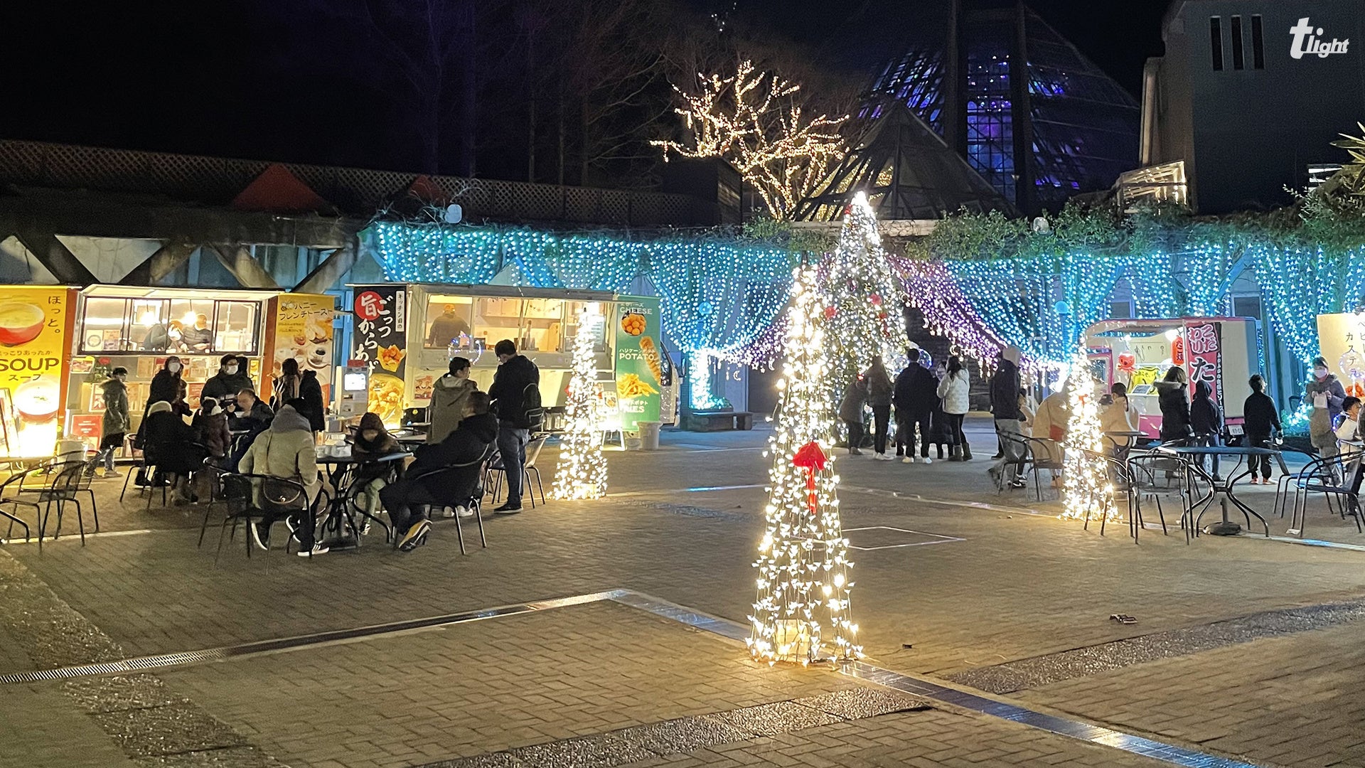 オープンエリアで密を回避、イルミネーションを眺めながら飲食を楽しめます。