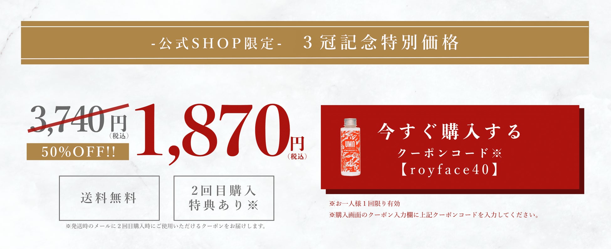 ▷3冠達成記念 / 公式オンラインSHOP限定 / 初回50%OFF(お1人様1回限り有効)