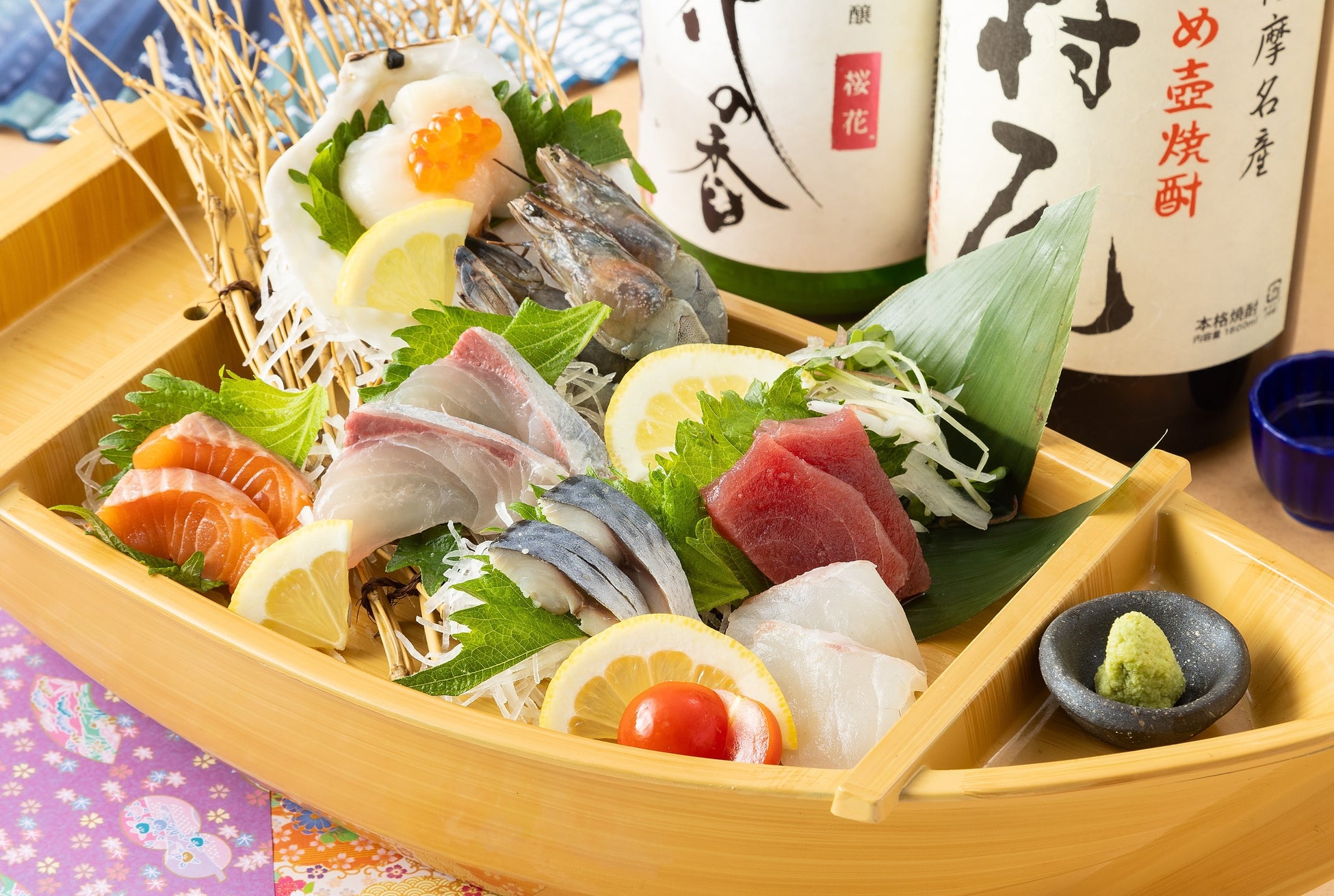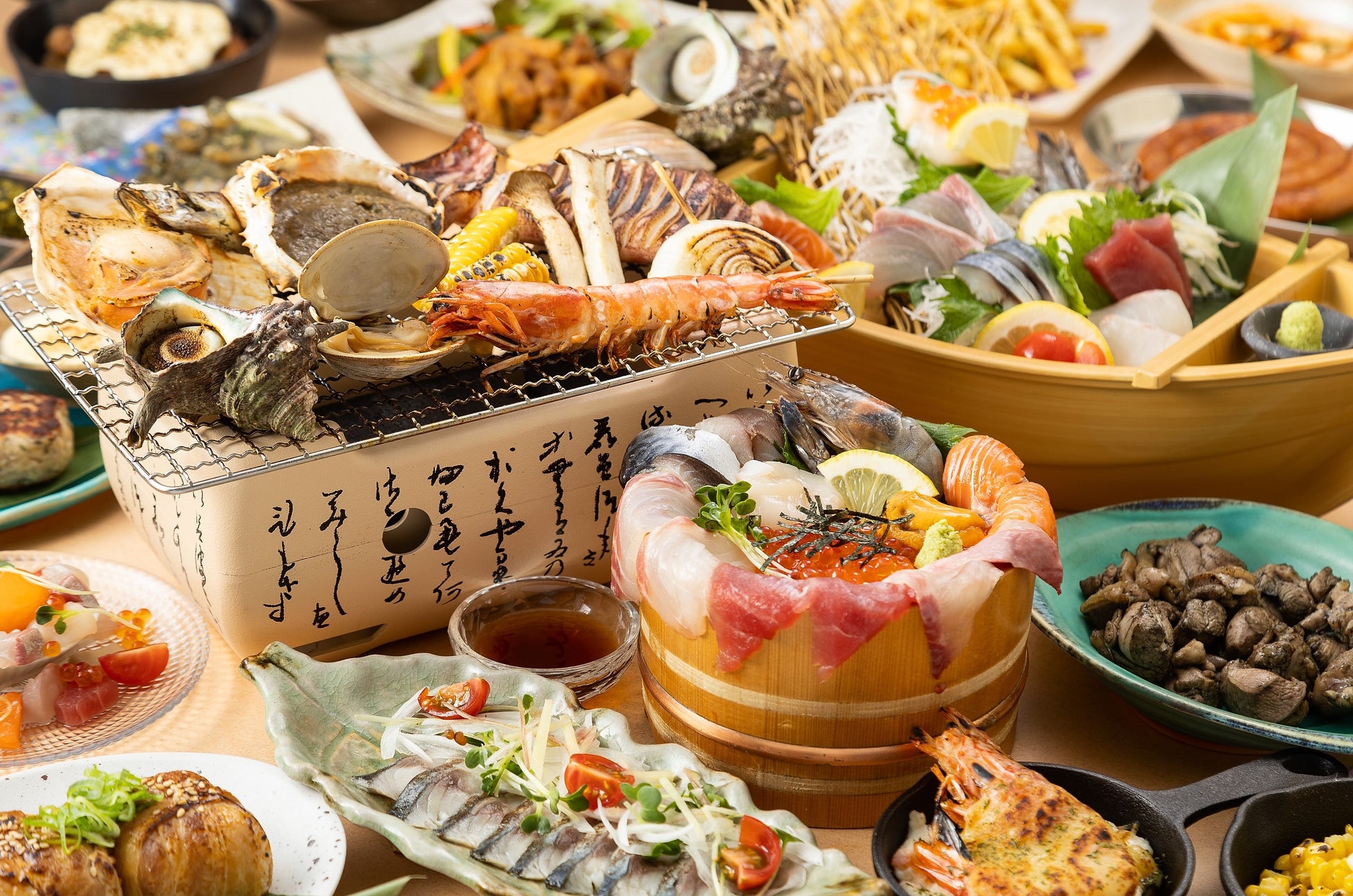 卓上で焼き上げて召し上がって頂く種類豊富な浜焼きや、鮮魚をふんだんに盛り付けた超豪華鮮魚舟盛りはインパクト抜群!酒のアテにピッタリな肴料理や逸品メニューなども豊富ですので是非ご賞味ください。