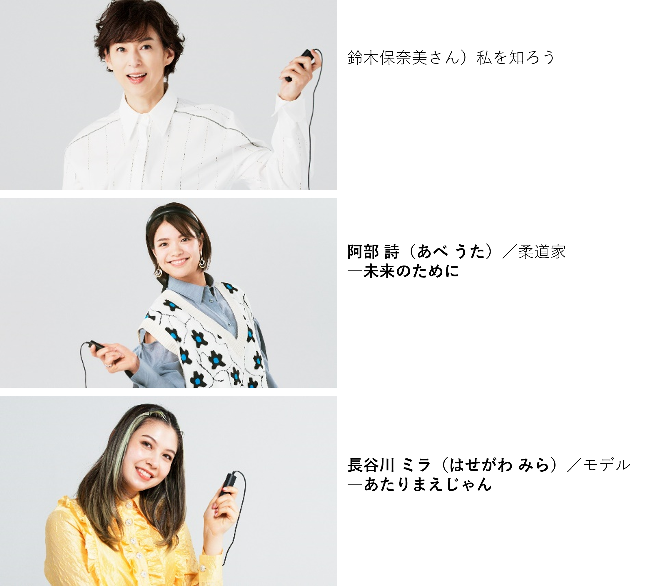 (W societyアンバサダー 阿部詩さん、島袋聖南さん、長谷川ミラさん /鈴木保奈美さん)