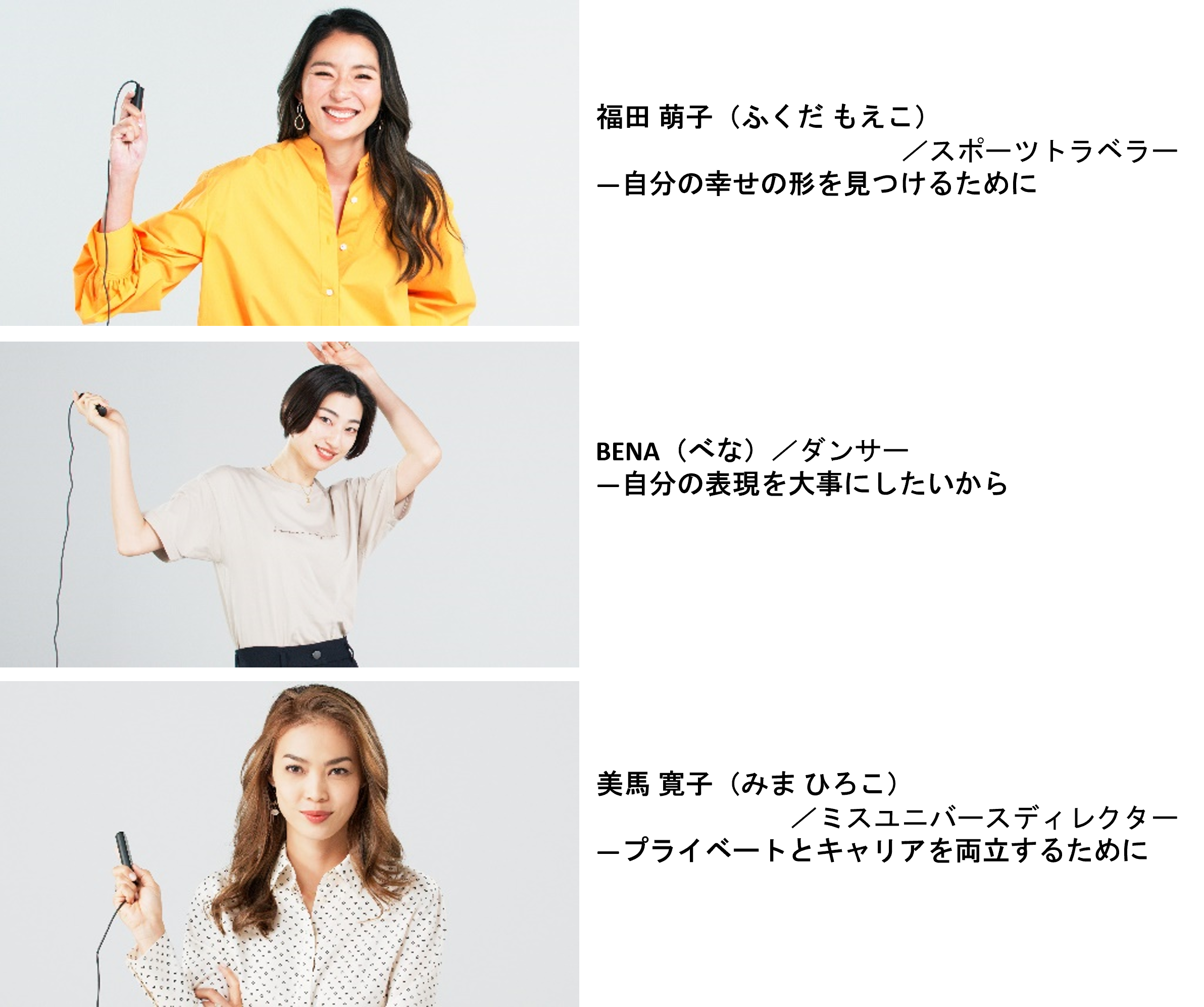 「W week」開催に合わせて公開する特別動画「#私を知ろう」には、W societyアンバサダーの3名に加え、鈴木保奈美さん(俳優)、福田萌子さん(スポーツトラベラー)、BENAさん(ダンサー)、川村真木子さん(実業家)、美馬寛子さん(ミスユニバースディレクター)のほか、保育士、主婦、イラストレーターなど、さまざまフィールドで活躍する21名の女性が登場します。