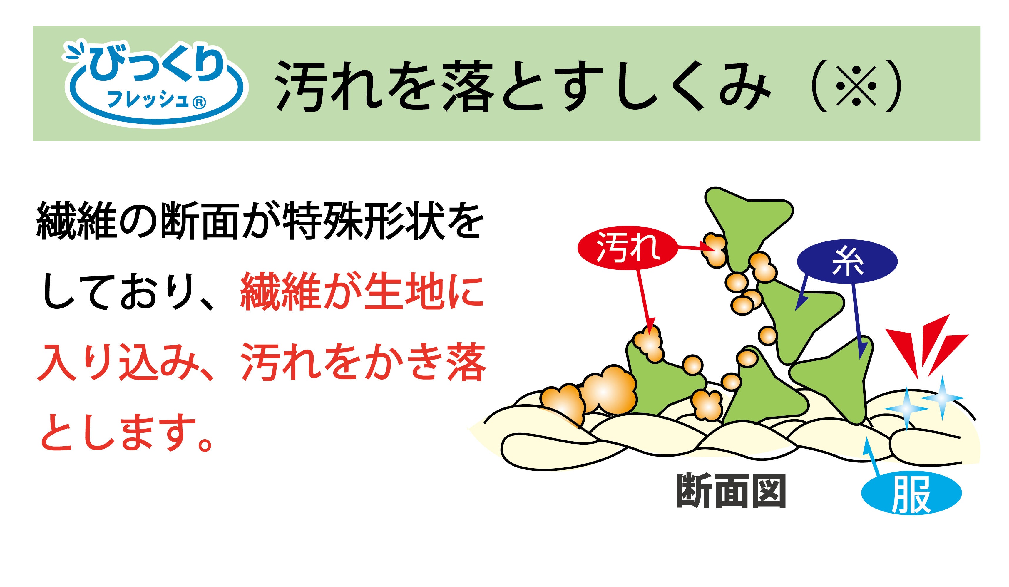 ・特殊形状の繊維※でこするので生地を傷める心配がない