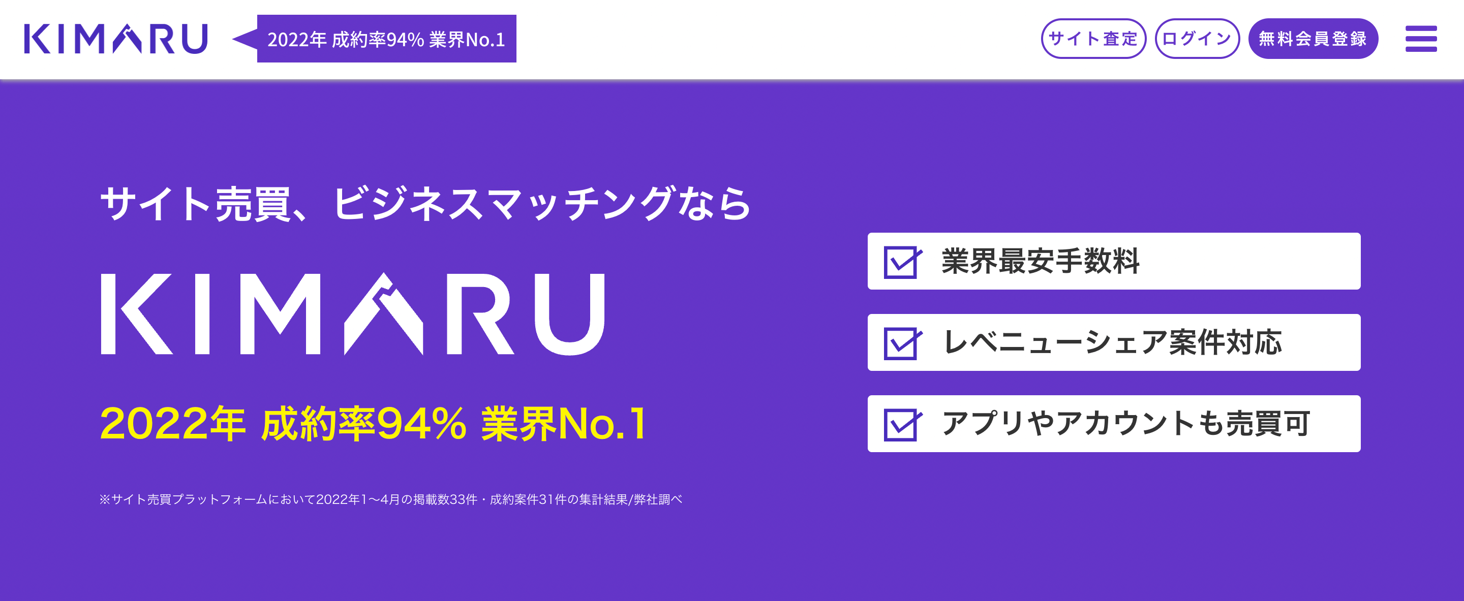 ※3,4:参照記事:「KIMARUが、「おすすめのサイト売買サービス」として他媒体で掲載されました。」https://2base.jp/news/site-mna-service