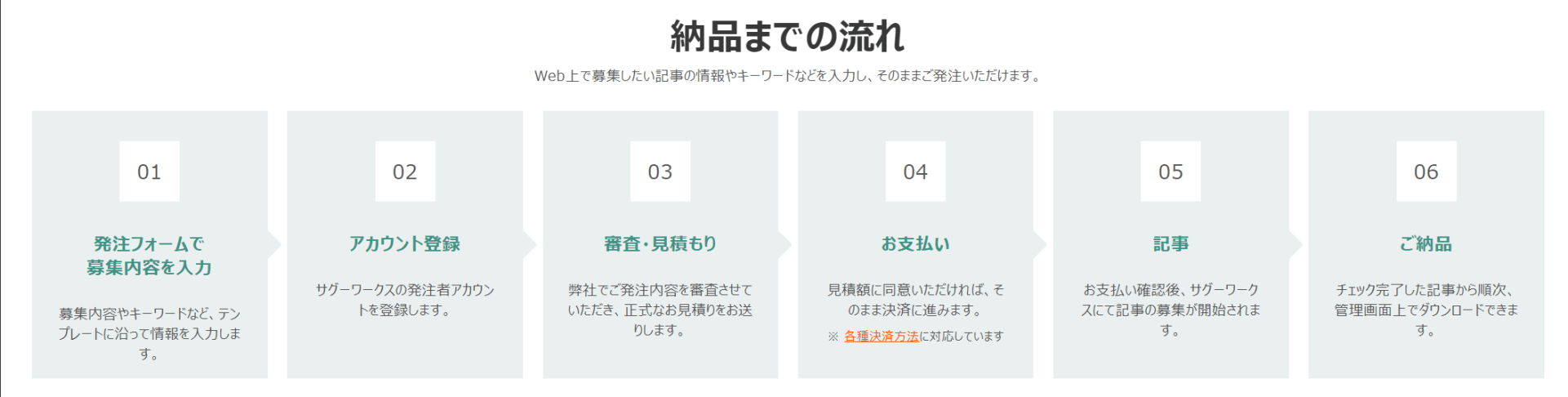 - <サグーワークスを利用した記事発注から納品までの流れ>