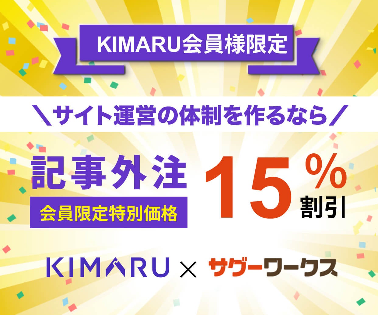 KIMARUの会員を対象に、サグーワークスのオンライン発注利用料が永続15%割引になる特典を提供開始。