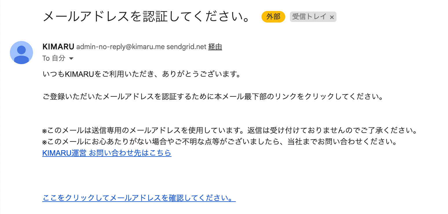 登録時に入力したメールアドレス宛に自動送信で確認メールが届きます。