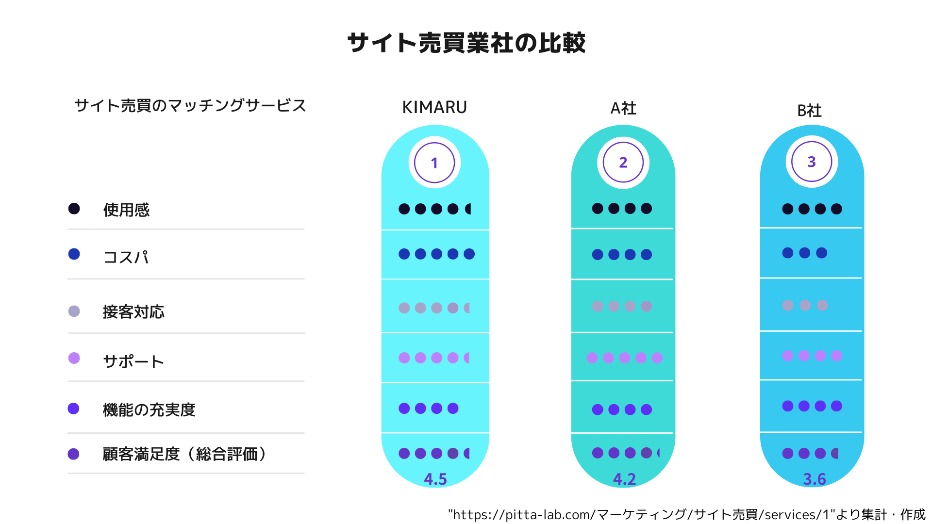 また現時点では、1万件以上のデータベースを有するBtoBマッチングサービス"PITTALAB"において、当社サービスの顧客満足度がサイト売買のジャンル内で最高評価となる星5評価中4.5(※3)を記録しております。