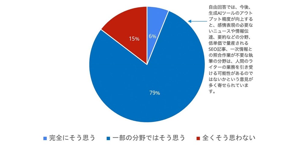 ●一部の分野では生成AIツールが人間のライターから置き換わる未來が予想される。