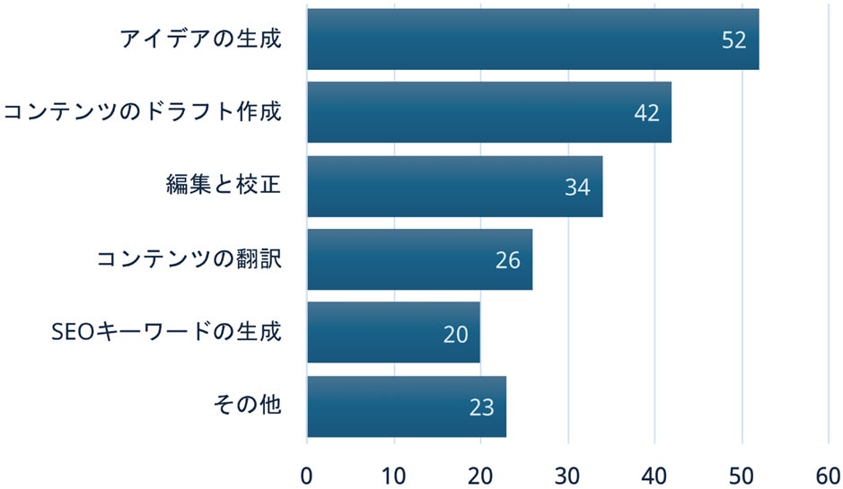 アイデアの生成、ドラフトの作成といった主に執筆前の段階で生成AIツールは力を発揮する。校正、翻訳、SEOワードの生成といった作業に活用することも多い。
