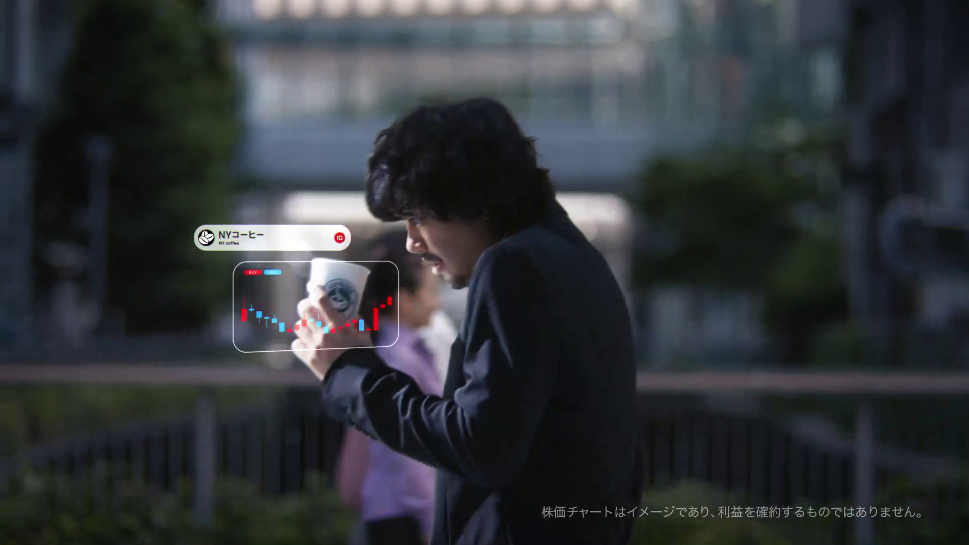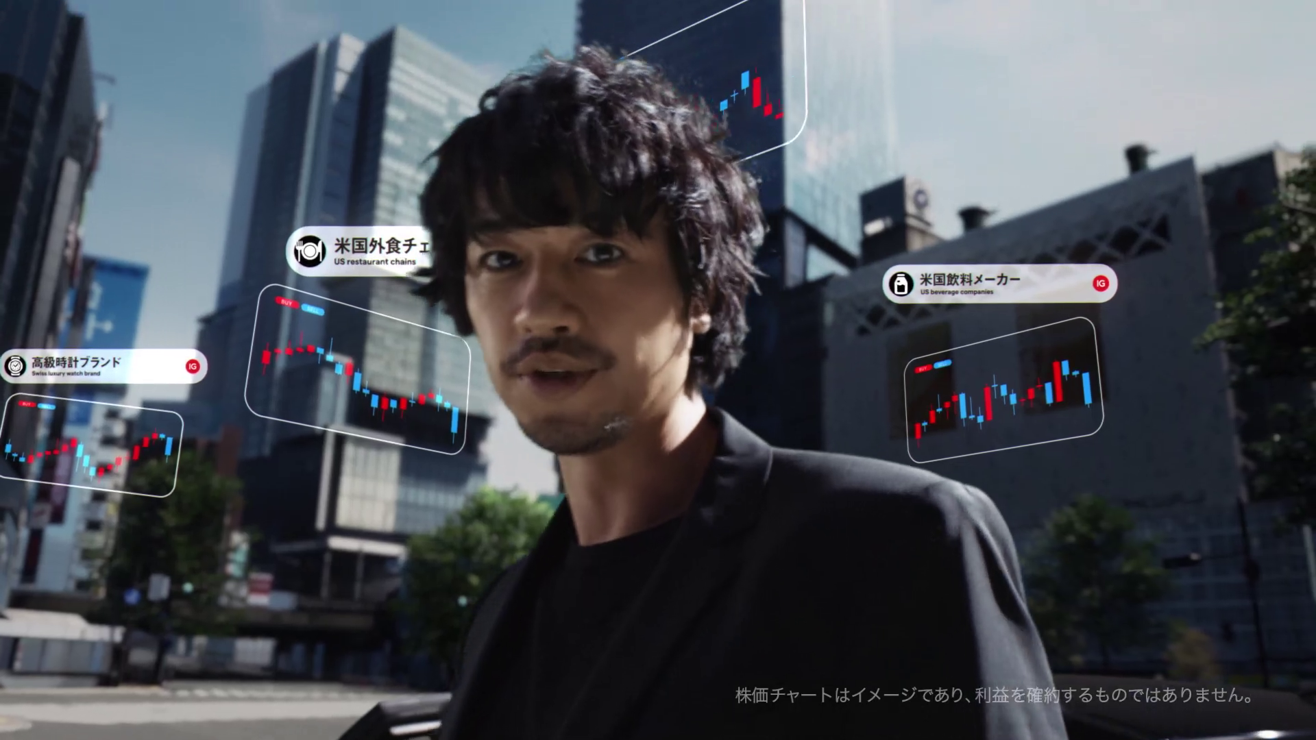 IG証券の“攻める投資”を表現した「CFD」篇では、変わりゆく渋谷の街中でクールな投資家に扮した斎藤さんのクールな演技が見どころです。